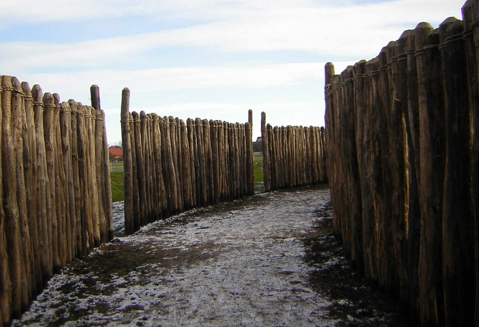 Реконструированный деревянный палисад Гозекского круга – вид изнутри