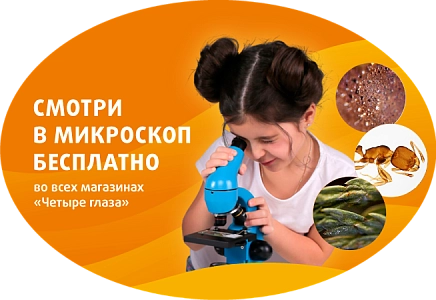Но микроскоп для ребенка – это не только инструмент познания мира. Простота эксплуатации детского микроскопа помогает развить в малыше самостоятельность и уверенность в своих силах. Купить детский микроскоп сегодня просто: в розничном магазине «Четыре глаза» или в интернет-магазине. Выбор за вами!